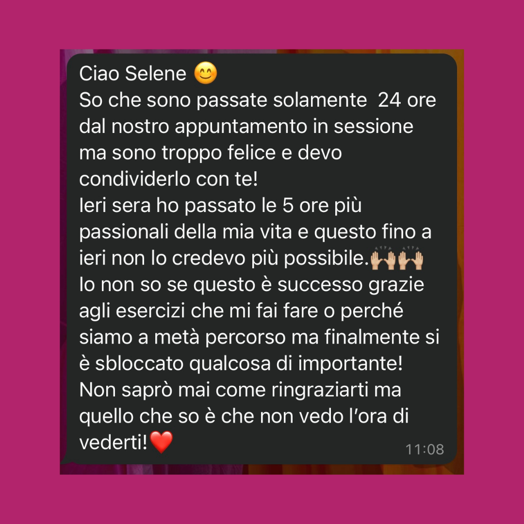 Alla fine riceverai: la tua restituzione personalizzata, una pratica concreta per iniziare subito e il video sull’intelligenza sessuale per capire cosa ti sta succedendo davvero.