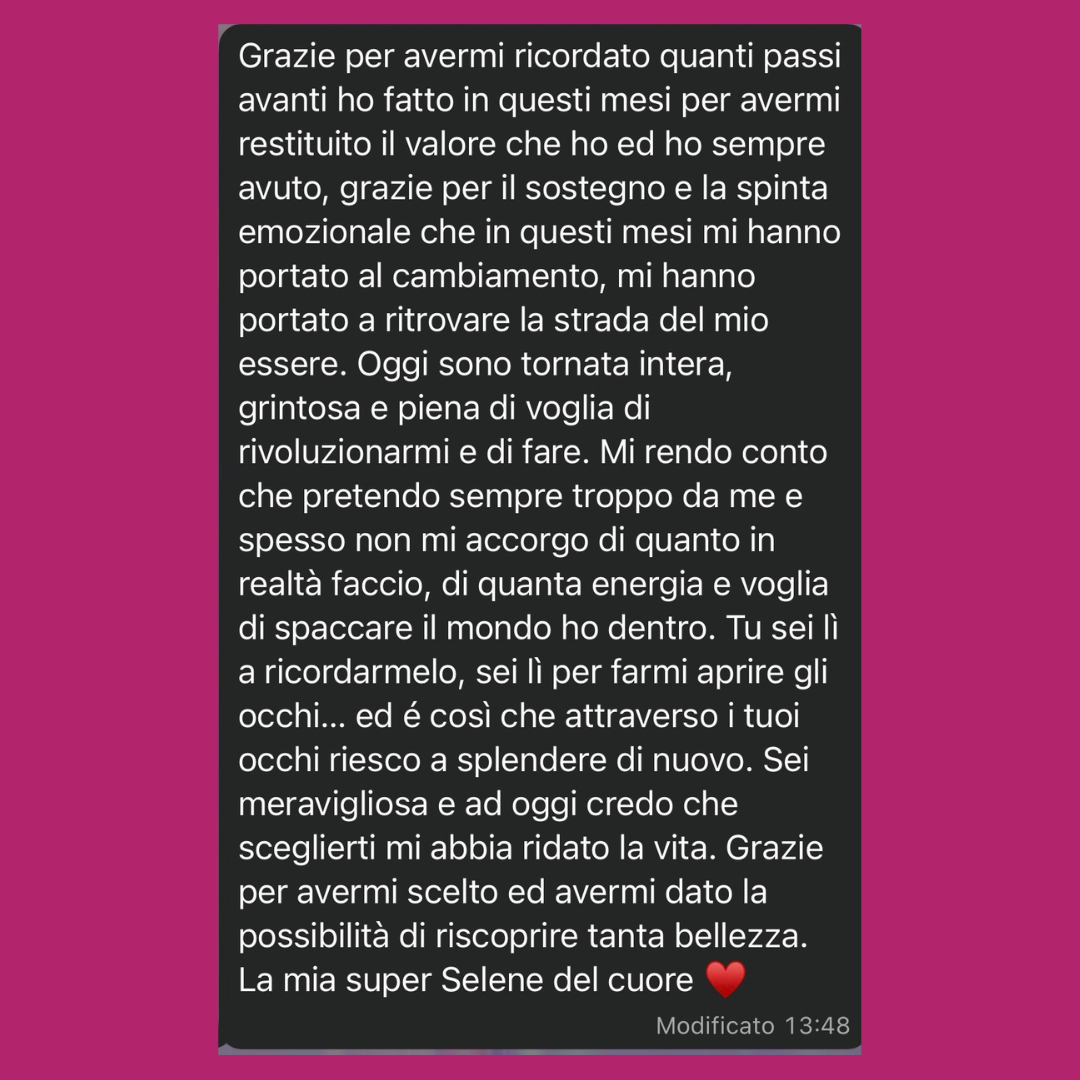 Ricevi subito la tua restituzione e il video. Alla fine trovi anche il link per candidarti a una call conoscitiva gratuita con me. Valuto personalmente ogni richiesta — la call è riservata a chi è in linea con il percorso Amati Libera.